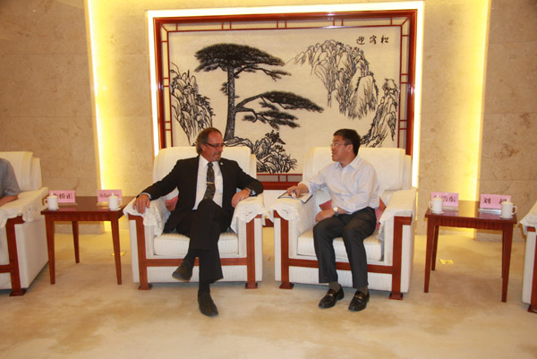 2015年9月28日,加拿大安大略省查塔姆肯特市市長 MR.Randy Hope(蘭迪市長)一行蒞臨集團公司參訪考察,并與孔令發董事長進行商務洽談。集團公司董事長孔令發、總裁徐希慶、淮北華翊文創園項目總經理蔡明鴻等陪同參觀。