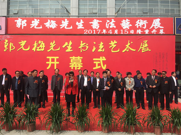 中國毛體書法家協(xié)會理事,中國毛體書法家協(xié)會安徽分會副主席、開渠書畫院院長、中國毛體書法家協(xié)會淮北分會主席郭光梅先生書法藝術(shù)展于2017415日上午930分在淮北體育場東門淮北市體育中心展廳隆重舉行開幕式。市人大常委會常務(wù)副主任方宗澤,市委常委、市委宣傳部部長顧文,市人大常委會副主任楊彥穎、余敏輝,市政協(xié)副主席蔣守彬、李彥秋、錢丹嬰,市人大常委會秘書長陳朝祥,市政府秘書長宋偉出席開幕式。