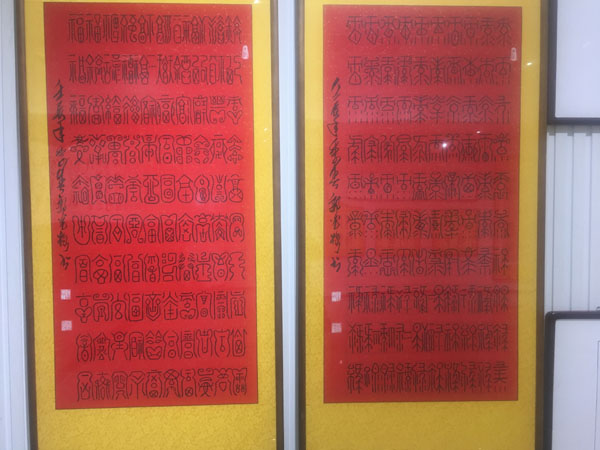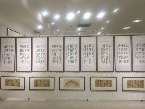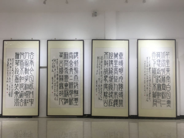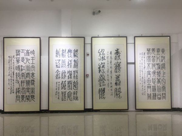 此次展覽由中國毛體書法家協(xié)會、中國毛體書法家協(xié)會安徽分會、天象集團有限責(zé)任公司聯(lián)合主辦,共展出了郭光梅183幅精選作品,包含了毛體、隸書等8種字體,展覽將持續(xù)到420日。