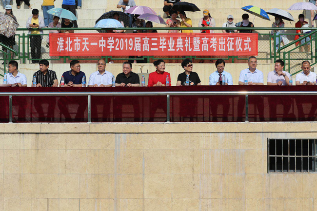 6月4日,淮北市天一中學(xué)2019屆高三畢業(yè)典禮暨高考出征儀式在天一中學(xué)體育場舉行。淮北一中校長、天一中學(xué)董事長馬穎女士、天象集團(tuán)董事長、天一中學(xué)副董事長孔令發(fā)先生、天一中學(xué)董事、天一初中校長郭光梅女士,以及天一中學(xué)校長林祥華先生、黨支部書記杜宏偉先生、常務(wù)副校長李平先生、副校長王小虎先生、天一初中常務(wù)副校長陳一中先生、副校長胡磊先生等出席了這次典禮。全體畢業(yè)生在國旗和驕陽下喊出青春的誓言,校領(lǐng)導(dǎo)、教師還有家長匯集于此,共同見證孩子們激昂又榮耀的一刻。