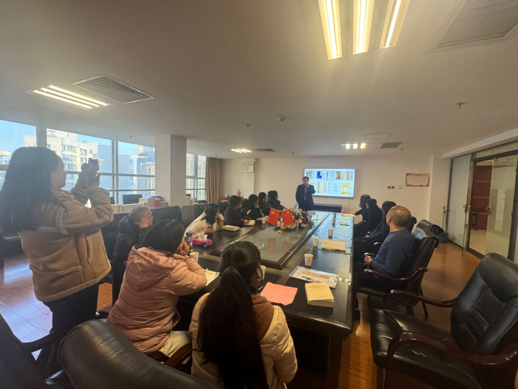 淮北市相山區相南街道黨群服務中心主任牛永、相南街道相陽社區黨總支書記張凱、相南街道黨建指導員丁瑞俠等部分黨員及天象集團全體黨員參加了此次精彩的黨課。