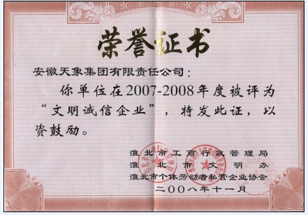 2007-2008年度淮北市文明誠信企業