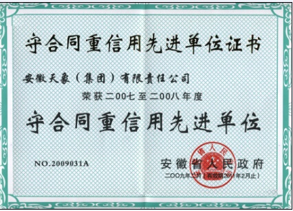 2007-2008年安徽省守合同重信用先進單位