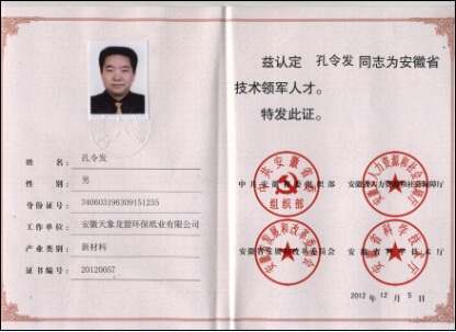 2012年孔董事長獲評安徽省技術領軍人才