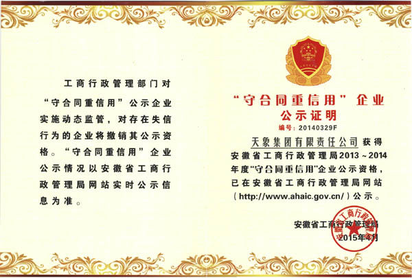 2013--2014年安徽省級守合同重信用單位